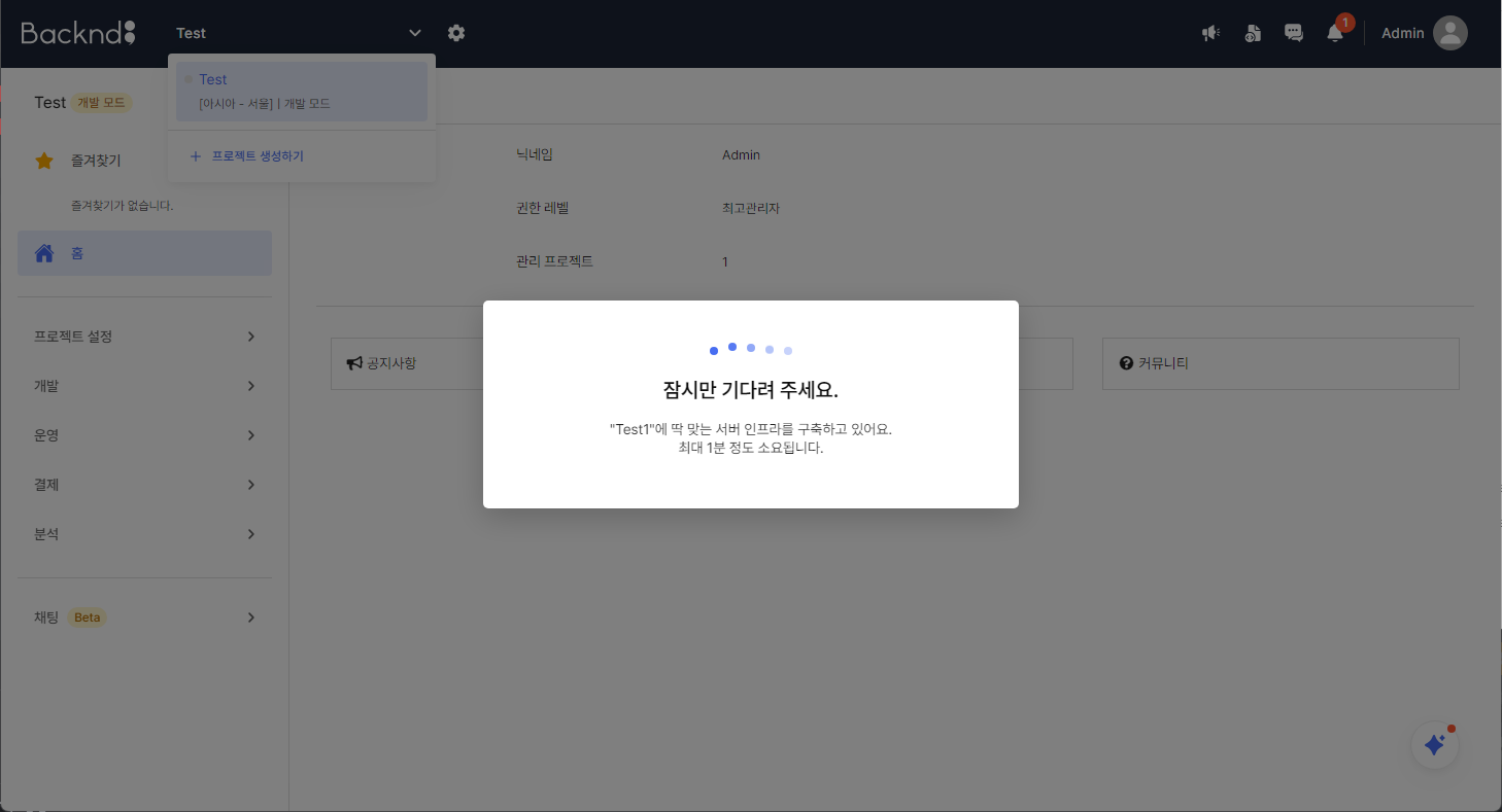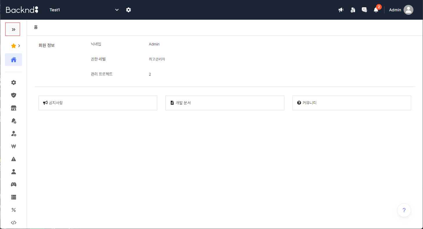 8. 다음으로 다시 뒤끝 홈페이지로 돌아가서 아래와 같이 버튼을 클릭하며 해당 페이지로 접속합니다.