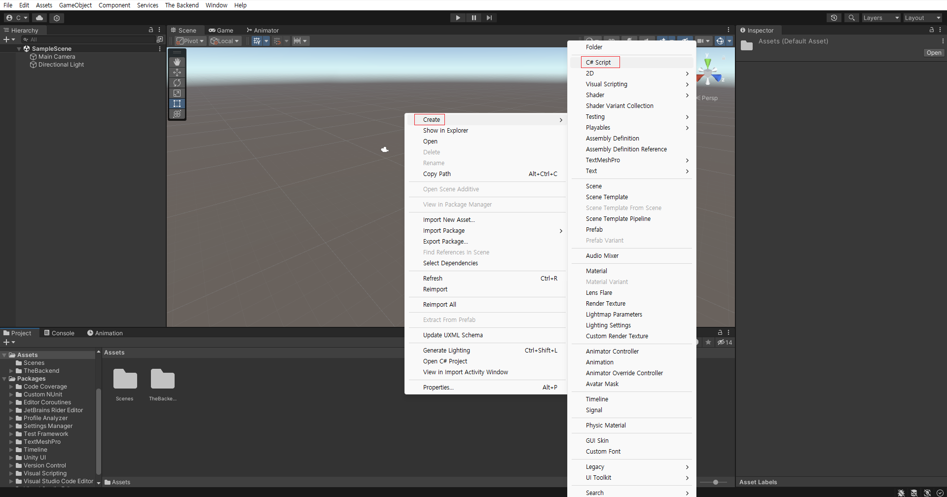 BackendManager라는 스크립트를 생성합니다.(이름 상관X)