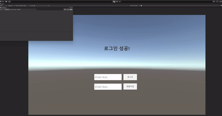이제 씬을 실행하신 후 로그인을 진행하게 되면 UserData가 서버에 저장됬다는 로그를 확인할 수 있습니다.