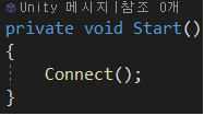 이제 버튼 클릭으로 네트워크를 연결할 것이기 때문에 Start 함수의 Connect()는 필요가 없게 되었습니다.