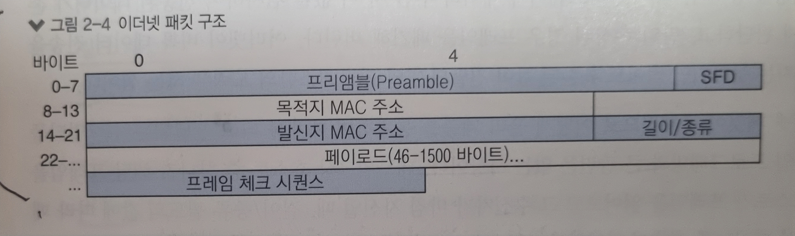 SFD뒤에 붙는 6바이트는 프레임의 수신자로 설정된 기기의 MAC주소를 나타낸다.