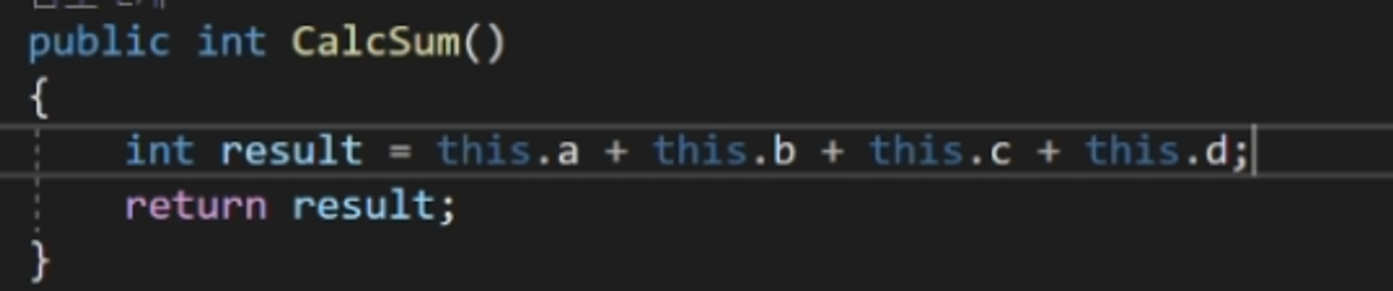 A. 멤버함수는 모두 자기 자신 클래스의 변수를 참조 받고있으나 생략되어있다. (ex. this.a , classname.a)