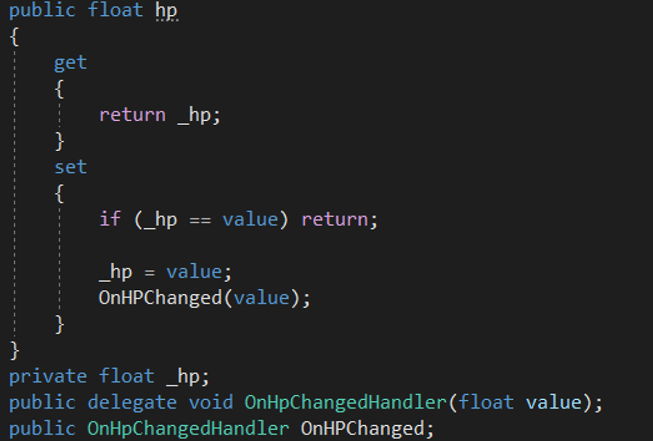 - 외부클래스에서 = 과 대리자를 사용할 수 없게 해줌(+=, -= 만 지원)